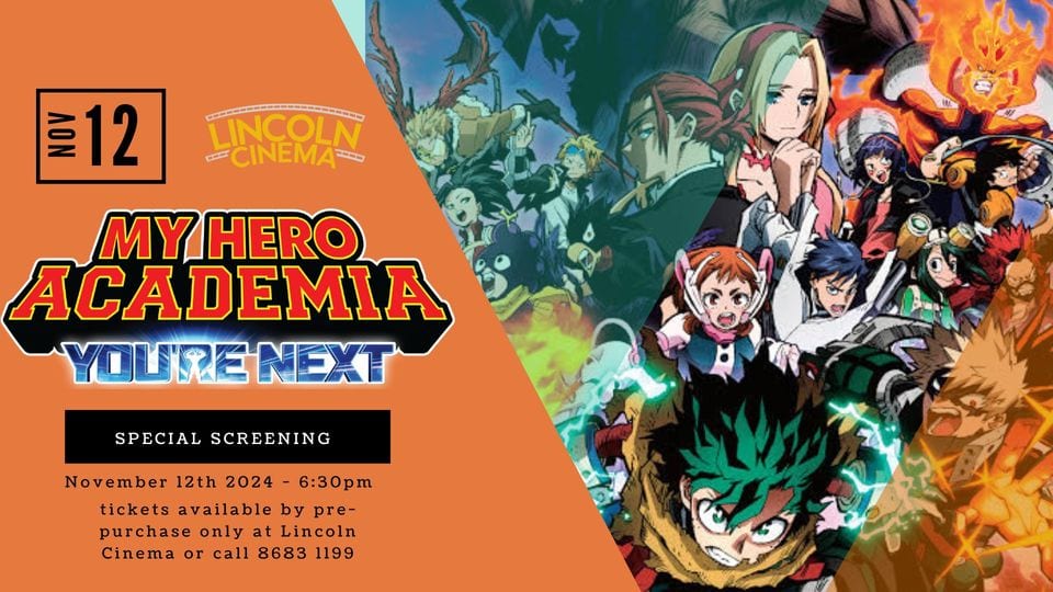 Read MoreLincoln Cinema are pleased to announce a private screening of ‘My Hero Academia: You’re Next’ – after the public have showed an interest for this movie. Tuesday 12th Nov 2024 […]